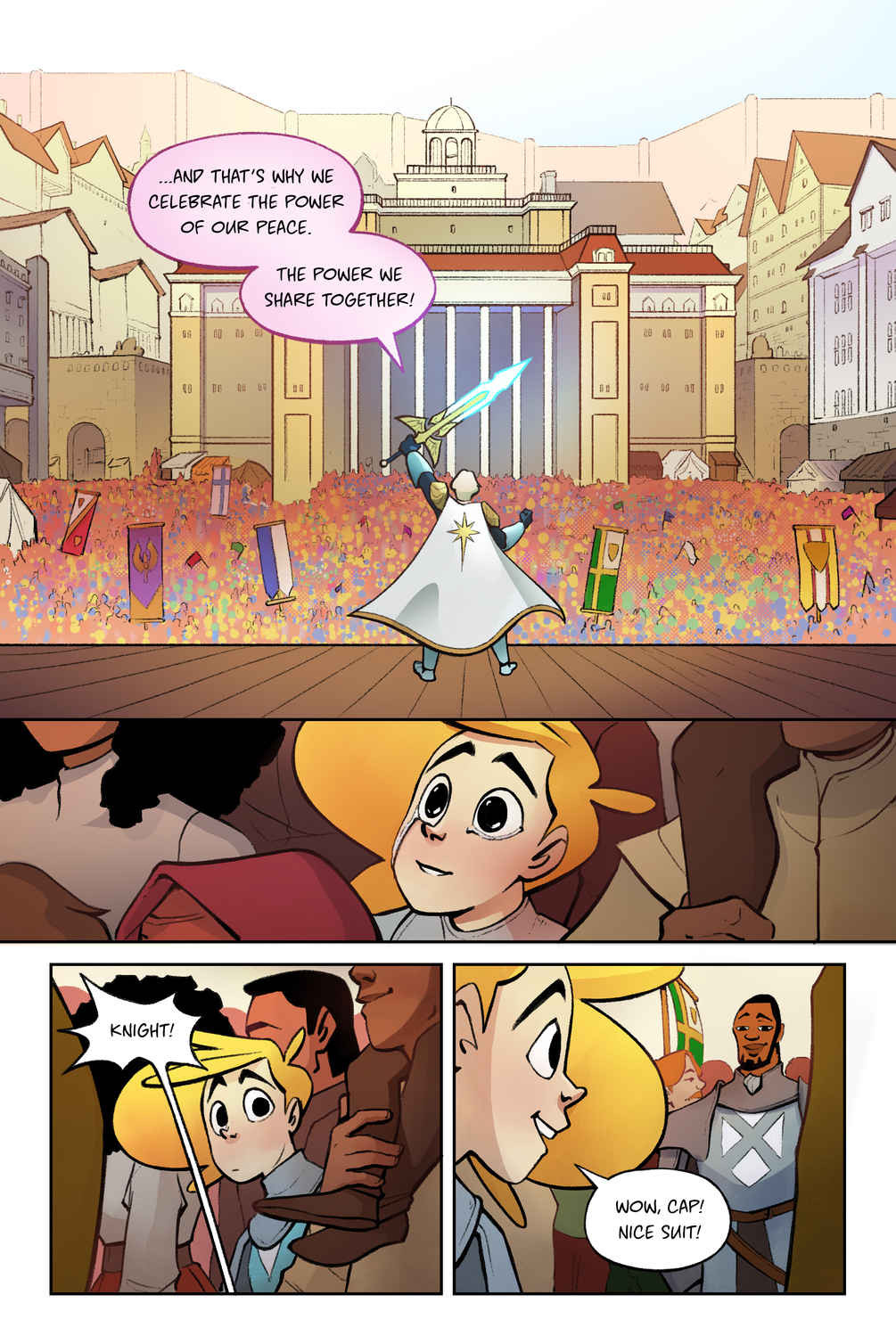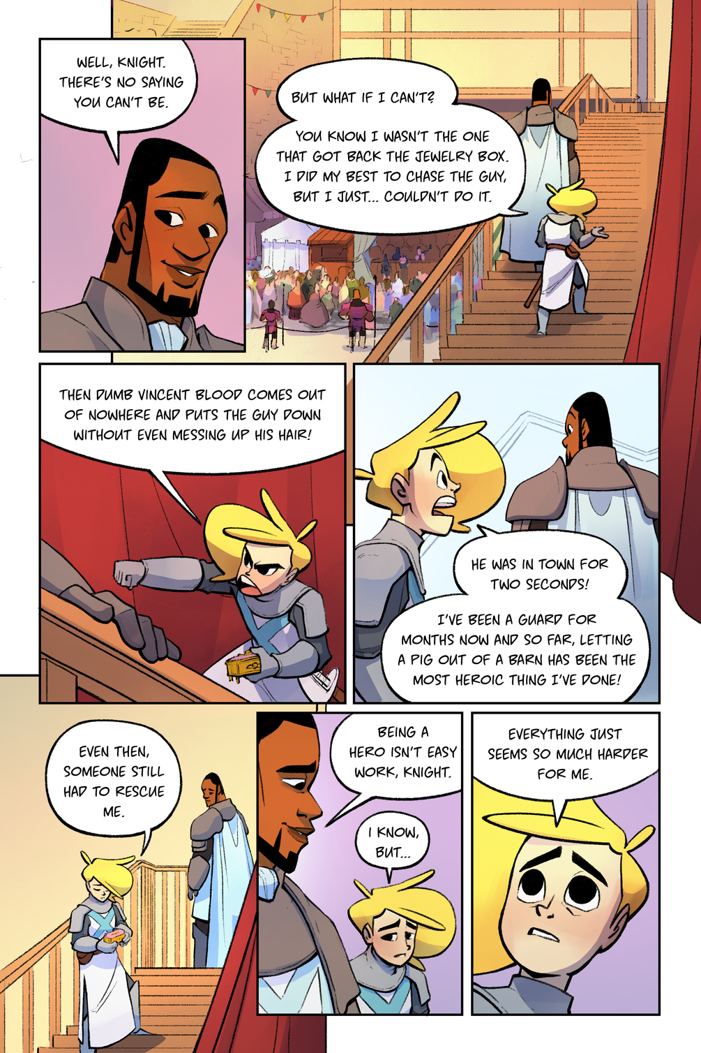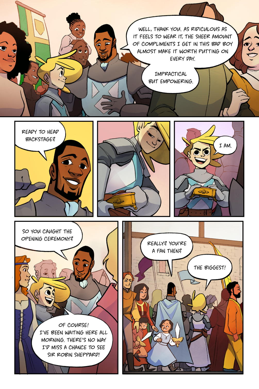 Knight & Beard is a webcomic created by Tara Kurtzhals & Sarah Bollinger of Open Field Studio. Knight & Beard Issue 9 contains a PDF with 51 pages of content.